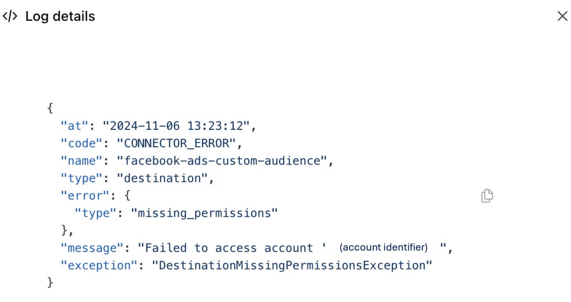 To avoid this type of error as much as possible, please refer to our technical documentation for each destination, which describes which parameters are mandatory for each type of activation.