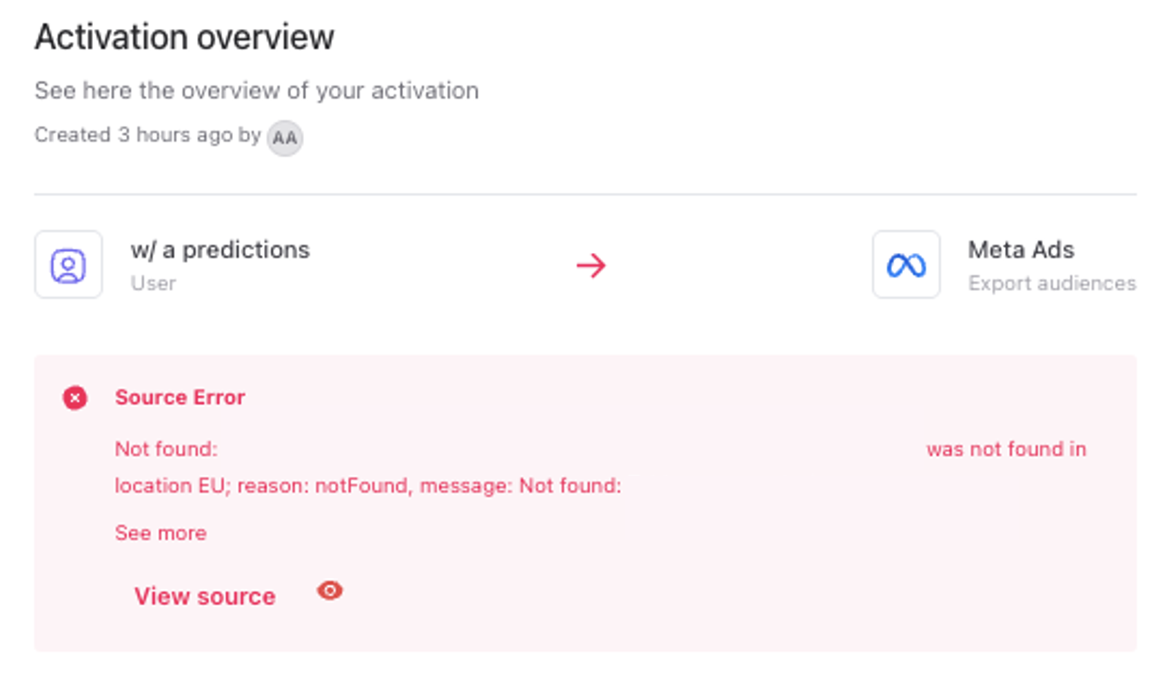 An error on the source can affect the operation of your activations. If DinMo no longer has access to your source, segments cannot be computed and therefore cannot be sent to a destination.