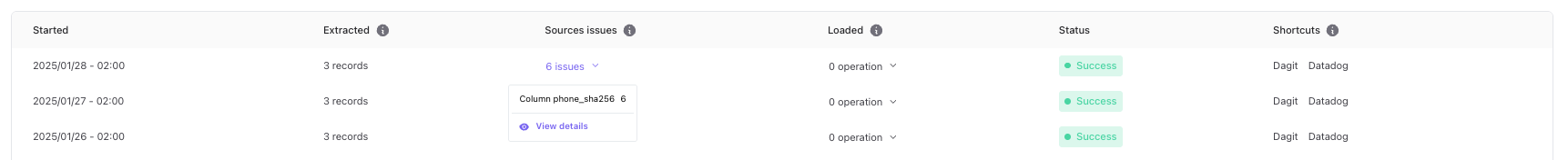 For any type of error (see following sections), you can retrieve the list of lines that caused problems in the activations by clicking on “View details” for the run, then copying the query to dig deeper into the data warehouse.