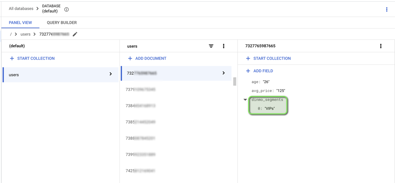 * Any profile entering your DinMo segment will have the segment name added to the `dinmo_segments` field within the corresponding Firestore document.