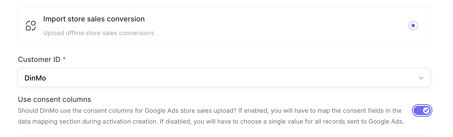 Once the destination has been setup, and your DinMo segment containing all your Offline Conversion events created, you can create an activation to start sending data to Google Ads right away.