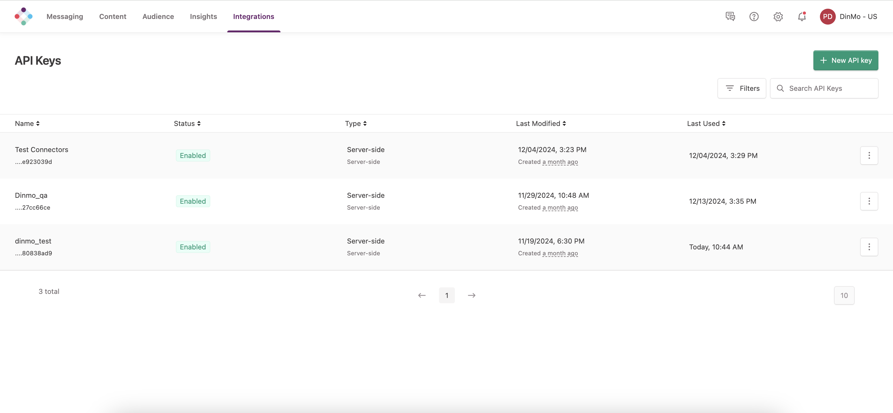 To generate an API key for Iterable, go to the Integrations tab and click on API Keys. Click on "Create a New API key" to get a new API key.