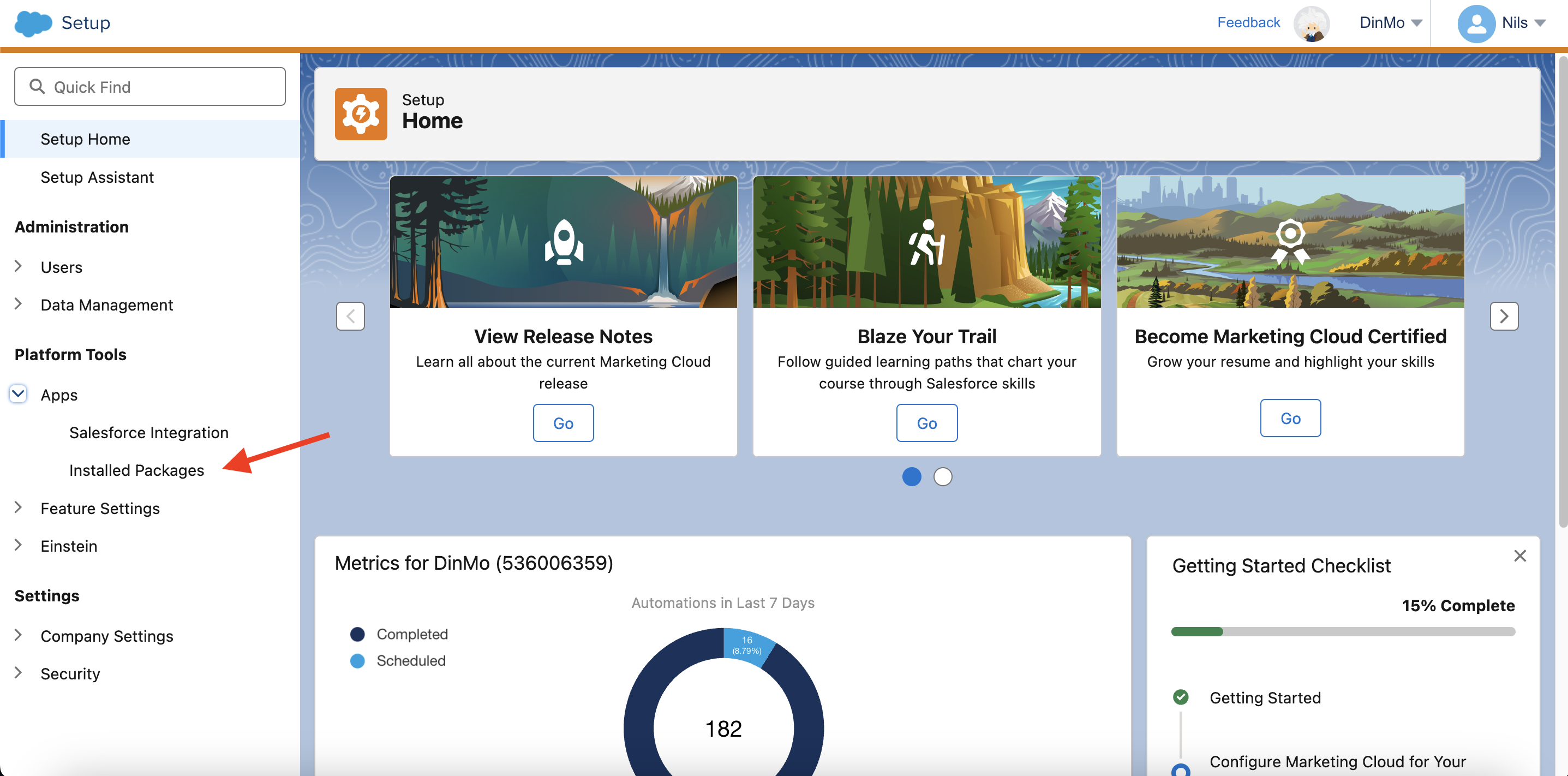 Open your Salesforce Marketing Cloud interface, and access the Setup tab, under your profile.